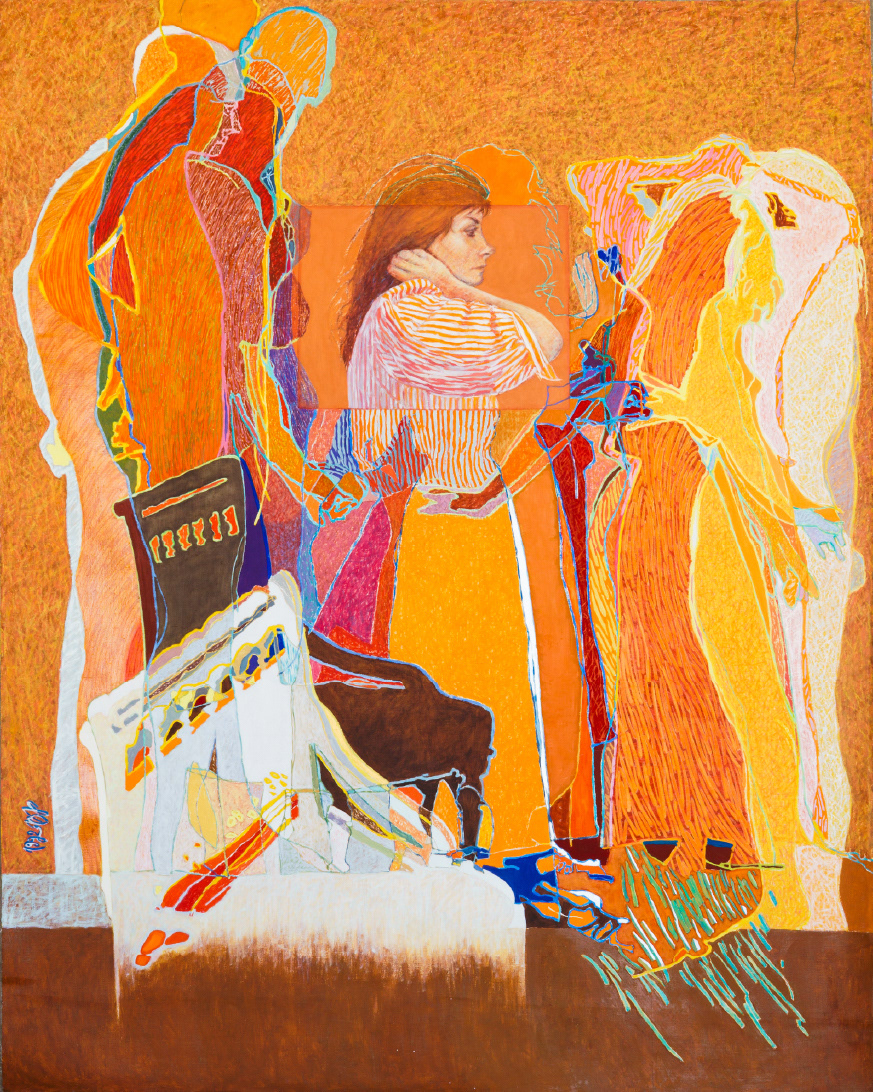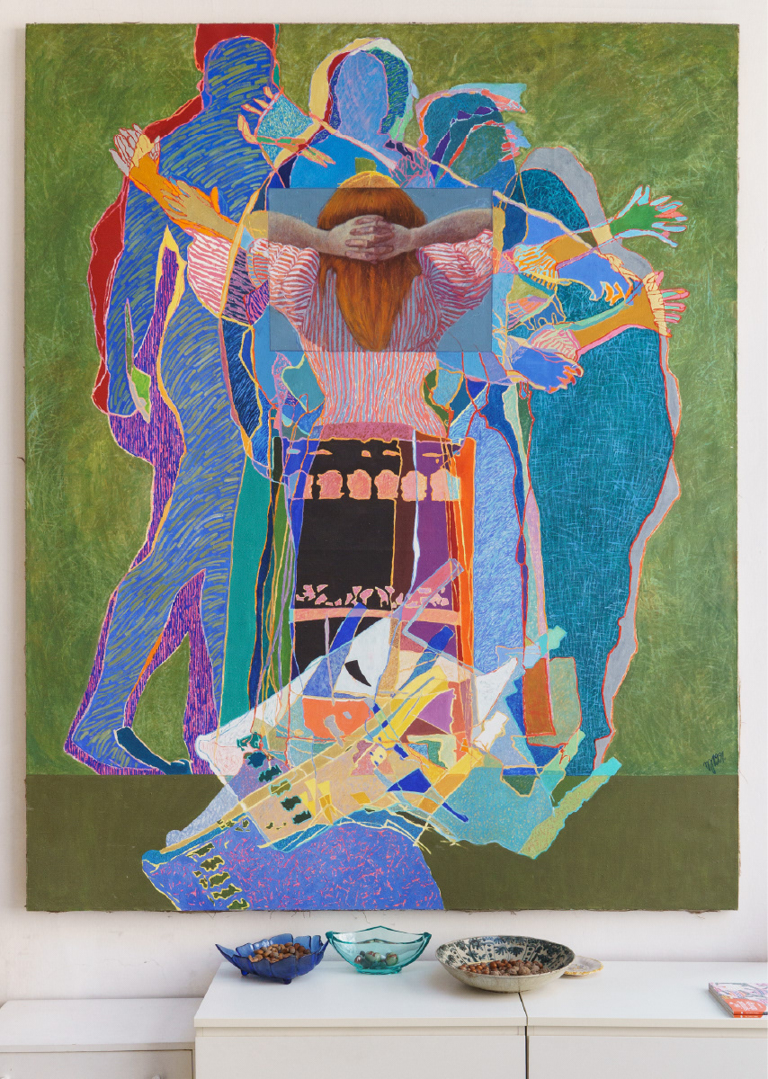 Standing for art, which expresses what is the most fundamental and carnal in humans, but often hidden deep in subconsciousness, I have steered away from politics and ideology. At some point, however, I gave in to the collective consciousness of the early 1980’s in Poland and painted this monochromatic composition. The inspiration came from walks in the woods, which I used to make regularly with my child, as an escape from the greyness of the city, the limitations, monotony and hopelessness of the Communist Era, an era when the only freedom was in the imagination and dreams. The sight of timeless trees, strong and firmly rooted in the ground, was giving me hope to live to the coming of better times. I felt unified with those majestic trees and understood that we endure here patiently together, becoming stronger, against changing political situations. Personified trees are a merged form, with powerful trunks, which are their backbones. They are the archetypal ‘sacred tree’ - axis mundi - connecting earthly and cosmic powers, the centre point of the new world from which the regeneration begins. And so it was, system transformation began here in Poland, the totalitarian system collapsed and the dreams of freedom we all had around 1984 finally came true.